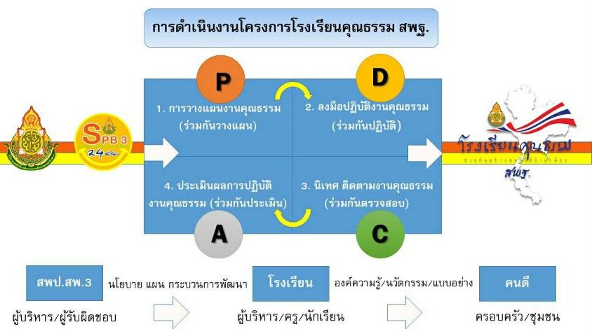 สำนักงานเขตพื้นที่การศึกษาประถมศึกษาสุพรรณบุรี เขต 3 ได้ดำเนินการขับเคลื่อนเพื่อส่งเสริม สนับสนุน และพัฒนางานด้านคุณธรรม ผ่านกิจกรรมส่งเสริมความดีต่าง ๆ ของโครงการโรงเรียนคุณธรรม สพฐ. ให้สอดคล้องกับแนวทางการดำเนินงานของสำนักงานคณะกรรมการการศึกษาชั้นพื้นฐาน ดังนี้